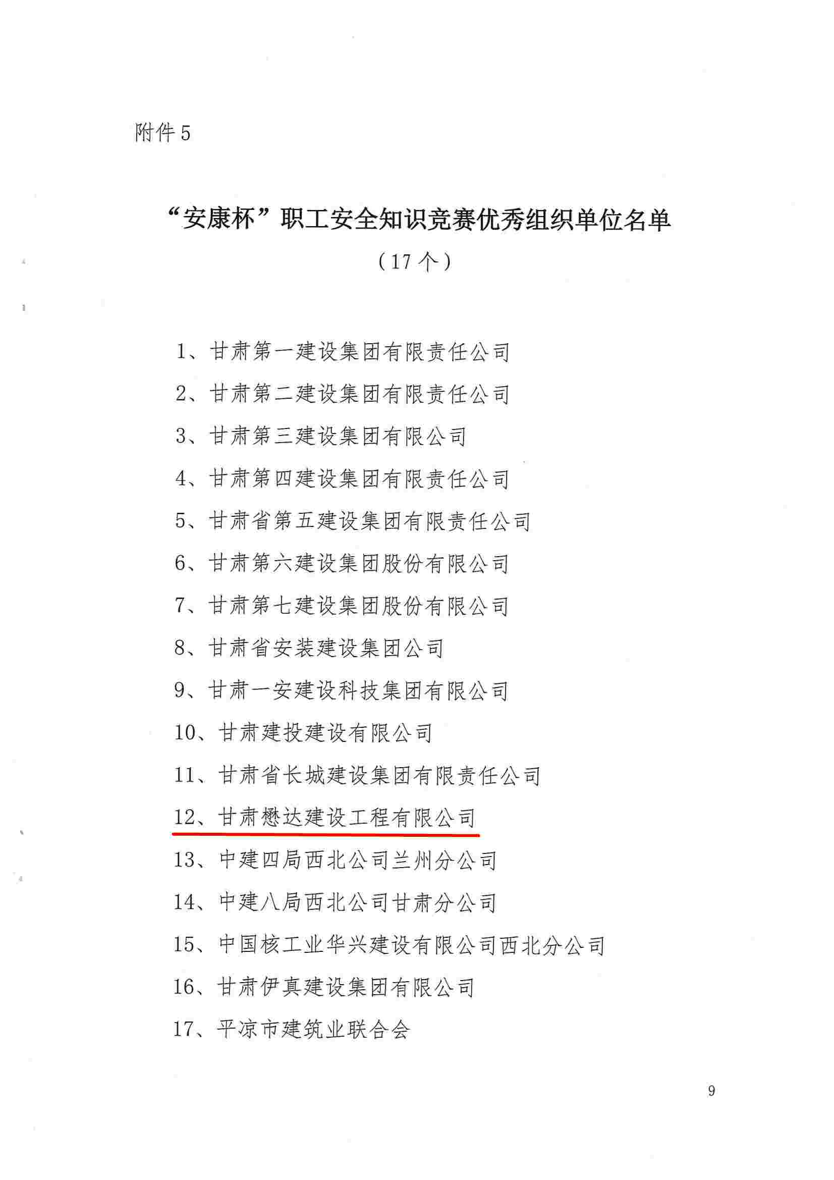 此次活動以“排查整治安全隱患、共促安全健康發(fā)展”為主題,于今年6月30日至9月30日,在全省組織開展了2023年度建設行業(yè)“安康杯”職工安全知識競賽暨安全文化宣傳活動。公司共有兩名員工榮獲“安康杯”職工安全知識競賽二等獎,八名員工榮獲三等獎,公司榮獲“安康杯”職工安全知識競賽“優(yōu)秀組織獎”。